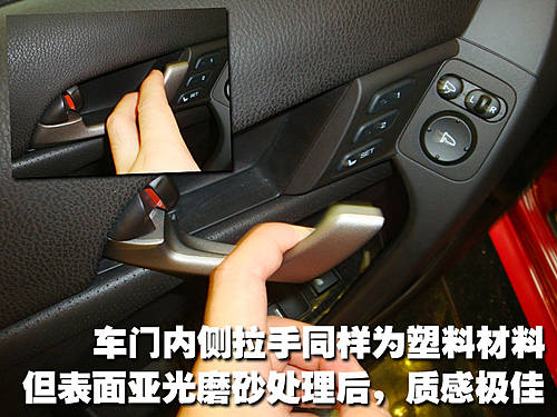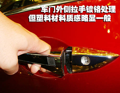思鉑睿的車門拉手為鍍鉻裝飾。開啟方式為“拉動式”,其整體做工比較精細。反復(fù)開啟車門時車門把手沒有松動的跡象,并且開啟時手感比較厚重。