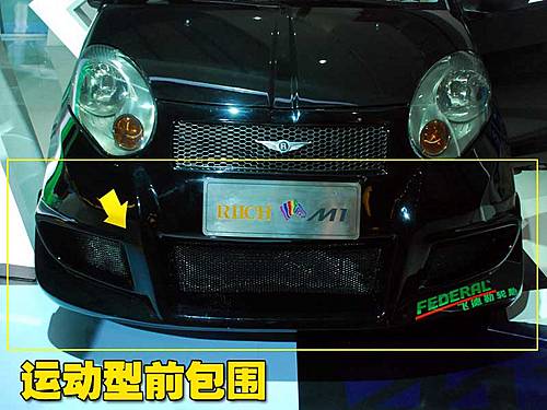 瑞麒M1改裝車的前杠換成了運(yùn)動(dòng)型前包圍,看起來非常的運(yùn)動(dòng),改裝的相當(dāng)徹底,不是簡(jiǎn)單改改前部,讓車身的感覺更低。