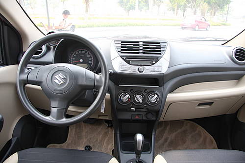 新奧拓采用深淺雙色調設計,內飾風格古樸且典雅。內部采用了三輻式方向盤,轉速表采用獨立設計,紅色的背景光使這款車看上去更富運動氣息,并配備了手動調節(jié)空調系統(tǒng),出于成本原因座椅均采用織布材質。