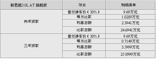 貸款詳解:新君越新上市不久,目前仍需要加價(jià)提車,現(xiàn)在實(shí)行的分期付款購車,分為兩年及三年付款兩類,買車的朋友可以根據(jù)自己的實(shí)際能力選擇貸款項(xiàng)目。首付款為凈車價(jià)的三成,也就是在9.69萬,當(dāng)然編者所列的車型是新君越的最高配,按照比例來計(jì)算的話其它版本的車型首付款要低于9.69萬。