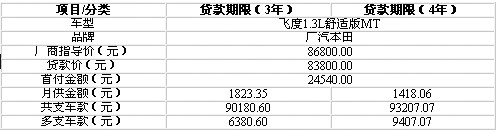 貸款詳解:飛度是小型家用車的典范,這點從它的銷量上就能看出來。缺點么,可能就是大家比較關(guān)心的安全和價錢問題?傮w來說,飛度綜合素質(zhì)較高,是第一臺車的好選擇。該車首付需2萬余元,月供僅需1400余元,對于手頭緊張的消費者來說還是比較劃算的。