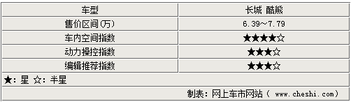 動力配置上,酷熊搭載了達(dá)到國際領(lǐng)先設(shè)計水平的長城全鋁構(gòu)造GW4G15VVT發(fā)動機,最大扭矩為138N•m,最大功率為77Kw,百公里油耗僅為6.0升。令人印象深刻的,還有酷熊超大的內(nèi)部空間!拔覀兲岢龅摹疁(zhǔn)C級’的概念并非空穴來風(fēng),這是我們比較后得出的真實地結(jié)論。”劉同福告訴記者,酷熊的內(nèi)部空間即便與奧迪A6L這類C級車相比也毫不遜色,在座墊徑深、后排坐高、前后排距離等方面,酷熊的表現(xiàn)甚至超過了奧迪A6L。A級車的價格,能買到C級車的駕乘空間,為特立獨行的酷熊增添了又一令人眩目的優(yōu)勢。