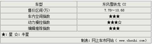 C2搭載的是標致雪鐵龍集團全新第三代TU系列發(fā)動機,采用了ME7.4.5管理系統(tǒng),在國產(chǎn)C2的自動檔車型上,配備了AL4順序控制自適應智能化手自一體變速箱,可以滿足駕駛者對速度和動力的更高要求。他的最大功率達到78/5750kw/rpm,最大扭矩達到142/4000Nm/rpm.最高速度達到185Km/h.ABS+EBD+ABD 電子防盜系統(tǒng)、前后霧燈等主動性安全裝置和良好的路面穩(wěn)定性以及非常平衡的操控性使C2增色不少。