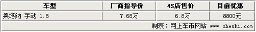 桑塔納 優(yōu)惠幅度:現(xiàn)金優(yōu)惠8800元