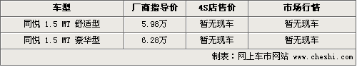 據(jù)銷售人員介紹,現(xiàn)在北京授權(quán)經(jīng)銷同悅系列車型的經(jīng)銷商并不多。各家店內(nèi)已經(jīng)開始大量銷售兩廂同悅RS系列車型,問及1.5L的同悅系列時,經(jīng)銷商表示仍未上市。不過現(xiàn)階段在店內(nèi)購買1.3L同悅?cè)龓?RS全系車型可給出3800元的現(xiàn)金優(yōu)惠。
