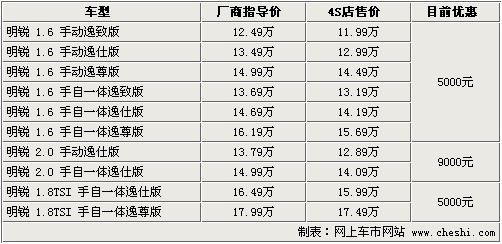 明銳-優(yōu)惠9000元 1.6L車(chē)型優(yōu)惠幅度減小