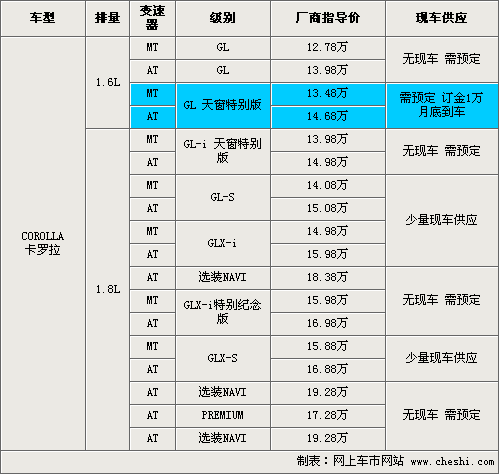 據一汽豐田4S店銷售人員介紹:目前2.0L排量的運動版車型無現(xiàn)車銷售,購買其他車型則可以享受到8000元——10000元的現(xiàn)金優(yōu)惠。入門級的1.6 MT GL版車型售價降到了12.18萬元,高配的1.8 AT PREMIUM版經10000元優(yōu)惠后,售價也降到了16.28萬元。