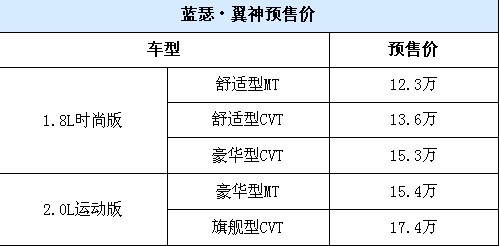作為今年緊湊型車市另外一款重要的產(chǎn)品,東南汽車官方表示,從2009年10月15日起三菱LANCER EX藍(lán)瑟·翼神正式以12.3-17.4萬元的預(yù)售價(jià)接受消費(fèi)者預(yù)定。其中1.8L時(shí)尚版共三款,分別為舒適型MT 12.3萬元,舒適型CVT 13.6萬元,豪華型CVT 15.3萬元;2.0L運(yùn)動版共兩款,分別為豪華型MT 15.4萬元,旗艦型CVT 17.4萬元。新車將于11月份中旬正式上市。