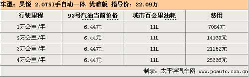 昊銳配備的2.0TSI發(fā)動(dòng)機(jī)在轉(zhuǎn)速達(dá)到5100rpm時(shí)可以輸出147kw的最大功率,在1700rpm時(shí)可以產(chǎn)生280Nm的最大扭矩,動(dòng)力性能更加強(qiáng)勁,無論在起步、加速、爬坡或是其他任何工況下,都可以讓駕駛者盡情地享受駕駛樂趣。根據(jù)網(wǎng)友實(shí)際油耗調(diào)查系統(tǒng)表示,昊銳2.0TSI百公里實(shí)際油耗為11L,行駛1萬公里需要花費(fèi)7084元。