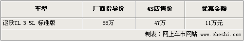 據(jù)謳歌4S店銷售人員介紹,目前謳歌TL在原來車型的基礎上增加選裝運動禮包,如加裝需要繳納4萬元,可將豪華版升級為運動版車型,運動版車型更換18寸輪轂及輪胎,并增加了擋泥板、雨擋等套件,F(xiàn)在消費者購車最高可優(yōu)惠現(xiàn)金11萬元,優(yōu)惠后售價僅為47萬元。目前TL普通版的現(xiàn)車較為齊全,并且有多款內(nèi)飾顏色可供挑選。如消費者有意購買,到店詳談會有更優(yōu)惠的價格。北京地區(qū)各4S店由于訂單不同,各店銷售的現(xiàn)車顏色有所不同。