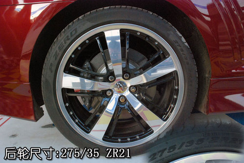 2010款雪佛蘭Camaro全系共分為5款車型,除了最低配車型配備鋼輪轂以外,其他車型均裝配了輪合金輪轂(此次拍攝車輛為全系最高配車型)。輪合金輪轂的造型雖然看起來很平凡,但是五幅式的亮銀粗輪幅與十幅式黑色細輪幅相間的效果還是會讓人流連忘返的。2010款雪佛蘭Camaro前輪的尺寸為245/40 ZR21,后輪的尺寸為275/35 ZR21,由于Camaro是后驅(qū)車型,為了增強抓地力所以驅(qū)動輪的橫向截面積會大于前輪的橫向截面積。前后剎車卡鉗均是由意大利著名的剎車系統(tǒng)生產(chǎn)廠商Brembo代工而成,這么一部兇猛的機器沒有一套能抑制它的剎車系統(tǒng)怎么能行呢!