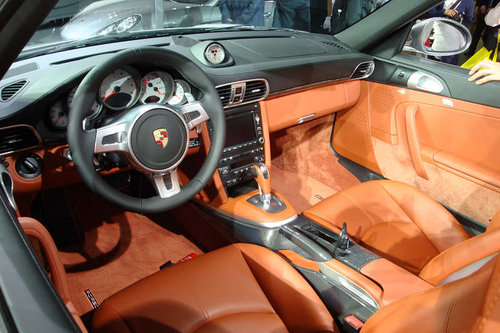 亞洲首發(fā)的保時捷911 Turbo Cabriolet成為展臺上最耀眼的明星。這款車型繼承了傳奇跑車系列所具備的非凡性能和精巧設(shè)計。這款第七代911 Turbo的核心亮點是其排量為3.8升、最大輸出功率達(dá)500 bhp的全新動力單元。在保時捷911 Turbo 35年的輝煌歷史當(dāng)中,這也是第一款全新搭載了直接燃油噴射以及帶有可變幾何渦輪保時捷專用渦輪增壓器的發(fā)動機(jī)。另外,全新六缸雙渦輪增壓水平對置發(fā)動機(jī)也是第一次與七速保時捷雙離合器變速箱(PDK)配合使用。