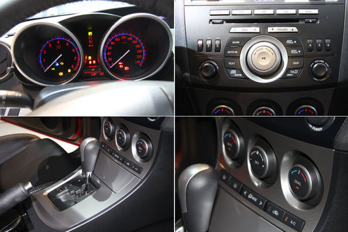 全車(chē)標(biāo)配了真皮座椅用料似乎比舊款有所提升,手感和工藝都數(shù)上乘水平。前排座椅的坐墊相比舊款分別加寬了20mm和加高了35mm,提高了舒適度之余,也增加了包裹性和高速入彎時(shí)的承托力,有效減少了身體的側(cè)滑。馬自達(dá)的multi-information display(MID)系統(tǒng),包括一塊液晶屏、智能鑰匙、無(wú)鑰匙啟動(dòng)系統(tǒng),而中控臺(tái)則標(biāo)配了6碟CD,F(xiàn)M/AM和雙區(qū)域恒溫空調(diào)控制鍵。