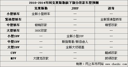 繼意大利汽車制造商菲亞特收購(gòu)克萊斯勒后,在未來(lái)12至18個(gè)月內(nèi)將進(jìn)行較大的戰(zhàn)略調(diào)整,多款全新的車型規(guī)劃將陸續(xù)出臺(tái)。全新一代克萊斯勒300C轎車和和2011吉普大切諾基越野車首當(dāng)其中,此外在未來(lái)18個(gè)月內(nèi)還將有5款全新改款車型推出。