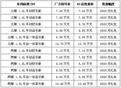 標致207全系送4500元大禮包 現(xiàn)貨年末放送