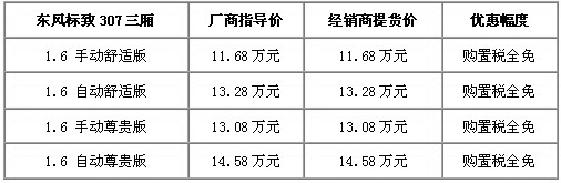年末將至,一些本已訂車的“訂車族”們,現(xiàn)已成為“催車族”,因?yàn)槊髂甑恼邔⒋笥胁煌。近日,車天下編輯從云南都市車迷寶獅店獲悉,目前購307 1.6L全系車型均可享受購置稅全免政策,而且即買即提,享受現(xiàn)車樂趣。具體車型及詳細(xì)優(yōu)惠政策,如下表: