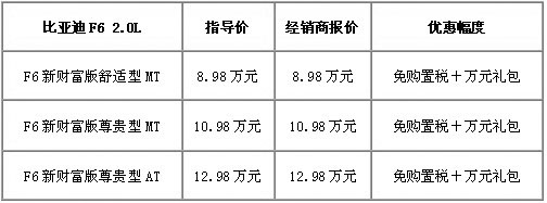 匯強(qiáng)購(gòu)比亞迪F6全系免購(gòu)置稅送萬元好禮