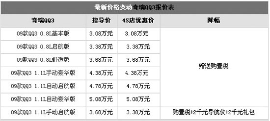 編者近日走訪(fǎng)了奇瑞汽車(chē)廣州地區(qū)的經(jīng)銷(xiāo)商了解到,目前購(gòu)買(mǎi)奇瑞QQ3,啟航版贈(zèng)送購(gòu)置稅、2千元導(dǎo)航儀、2千元禮包,總價(jià)值5500元。其他版本則贈(zèng)送購(gòu)置稅,喜歡這款車(chē)的朋友不妨到店詳談以爭(zhēng)取更多的優(yōu)惠。