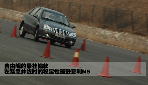 相對于夏利N5和新羚羊,自由艦在緊急制動時的點頭現(xiàn)象比較嚴重,駕駛員在車內(nèi)會有明顯“下扎”的感覺。在同等速度下,自由艦較重的車身會帶來更多的慣性,使制動距離相對較長。