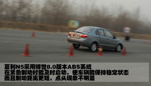 最后進行的是緊急制動項目,主要考核車輛在緊急制動時表現(xiàn)出的穩(wěn)定性,以及車輛剎車的有效距離。由于緊急制動時,三款測試車輛的時速各不相同,所以結果也會有所差別。夏利N5測試時的時速比較高,達到了近90km/h的速度,但這款車的制動距離仍然保持在可控范圍之內(nèi),而且點頭現(xiàn)象也并不明顯。另外,夏利N5配備的博世8.0版本ABS系統(tǒng),在緊急制動時能及時啟動,使車身保持在穩(wěn)定狀態(tài)。