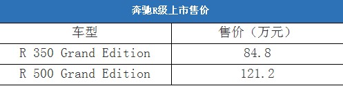 1月20日,奔馳(中國)汽車銷售有限公司宣布,旗下R級大型豪華運動旅行車的最新升級版本R 350 Grand Edition和R 500 Grand Edition于新年伊始正式登陸中國市場,售價分別為848,000元和1,212,000元。兩款新車在R級基礎(chǔ)上融入了更多精選豪華配置和AMG獨有的運動風(fēng)格。