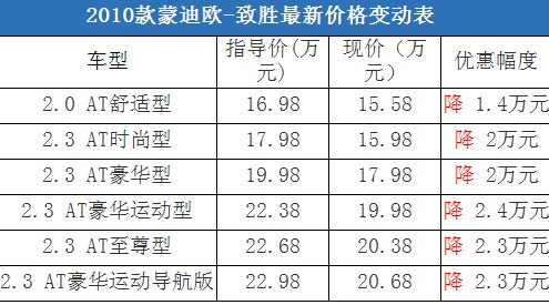 近日,編輯從長(zhǎng)安福特北京綜合經(jīng)銷商處了解到,蒙迪歐-致勝的現(xiàn)車比較充足,目前購車最高可以優(yōu)惠2.4萬元現(xiàn)金,與去年末的降價(jià)幅度持平。據(jù)經(jīng)銷商透露,消費(fèi)者要想以這個(gè)價(jià)格提車,需要在店內(nèi)做購車一條龍服務(wù),其中車輛四項(xiàng)基本保險(xiǎn)的折扣為9折。以下是蒙迪歐-致勝最新價(jià)格變化表: