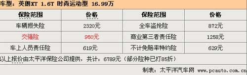 以指導(dǎo)價(jià)16.99萬的英朗XT 1.6T 時(shí)尚運(yùn)動(dòng)型為例,保險(xiǎn)方面購買了第三者50萬元責(zé)任險(xiǎn),每年的保險(xiǎn)費(fèi)用為6789元。