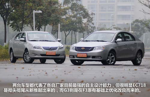 同樣不足9萬元就可以從經(jīng)銷商店里開出來;同樣給到你超乎想象的豐富配置;同樣是兩個(gè)自主品牌進(jìn)軍“中高端市場”的首發(fā)車型,實(shí)在有太多的理由要把比亞迪G3和吉利帝豪EC718這兩臺新力軍車型一起拉出來溜溜。但實(shí)際上不需要五分鐘時(shí)間,甚至還沒有把車子動起來,光是靜態(tài)觀察已經(jīng)足夠明白兩款車的不同取向。