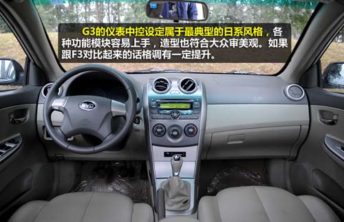 雖然比亞迪G3的總體內(nèi)飾設(shè)定還是能夠找到不少其他車型的痕跡,但起碼從整體效果上來看并不讓人失望。前排乘客的空間感足夠?qū)捲#曇耙蚕喈?dāng)寬廣。各種功能設(shè)定簡明易用,不少按鈕還特設(shè)有中文標(biāo)識。至于以往自主車型并不太擅長的人機(jī)工程學(xué)匹配,比亞迪G3上面也有了不錯(cuò)的改良,方向盤、座椅、腳踏板、檔桿、手剎等的空間位置都頗為理想。只不過是車廂內(nèi)的塑料感實(shí)在過于強(qiáng)烈了,影響了給人的第一印象。
