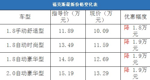 近日,編輯從北京地區(qū)長安福特4S經(jīng)銷商處了解到,?怂沟默F(xiàn)車充足,顏色也比較全,但是目前購車沒有任何優(yōu)惠,只能消費(fèi)者到店與銷售人員詳談才可以爭取少量優(yōu)惠。相比之下,福克斯在綜合經(jīng)銷商處的優(yōu)惠最高達(dá)到了1.9萬元,性價(jià)比非常不錯(cuò)。以下是?怂谷龓钚聝r(jià)格變化表: