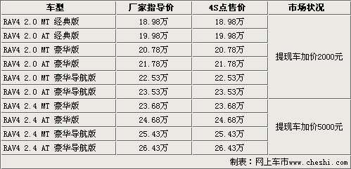 一汽豐田RAV4 提現(xiàn)車加價(jià)5000元