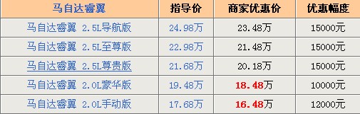 馬自達(dá)6睿翼與馬自達(dá)6同配置車型始終保持著萬元以上的差距,編輯覺得這樣的定價不錯,豐儉由人,可以照顧到更多的客戶。2.0L排量車型的加入使得睿翼銷量有所改善,相比起2.5L車型,性價比更高一些。