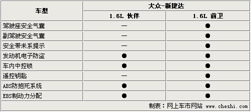 全新捷達(dá)雖然冠上全新二字,但消費者仍然不會對捷達(dá)的配置有非常大的興趣。對于這樣一款進行過幾次改型的老車型,配置方面不會有太大變化。在1.6L前衛(wèi)車型上,標(biāo)配了前駕駛員與副駕駛安全氣囊,,保證了前排乘員的安全。駕駛員一側(cè)的安全帶帶有未系提示,時刻提醒駕駛員保證自身安全。全系標(biāo)配的配置還有電子防盜系統(tǒng)、車內(nèi)中控鎖及ABS+EBD系統(tǒng)。1.6L伙伴并沒有裝備安全氣囊,配置較低。