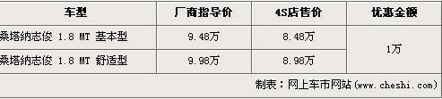 據(jù)上海大眾經(jīng)銷商處銷售人員介紹,桑塔納志俊全系優(yōu)惠1萬元。桑塔納志俊1.8 MT基本型經(jīng)優(yōu)惠后,售價從9.48萬元下降到了8.48萬元。售價為9.98萬元的桑塔納志俊經(jīng)優(yōu)惠后,售價降到了8.98萬元。