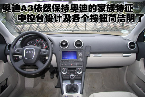 奧迪A3依然保持奧迪的家族特征,中控臺(tái)設(shè)計(jì)及各個(gè)按鈕簡潔明了。其三輻式真皮方向盤配備集成控制按鈕,而白色冷光儀表盤突出視覺效果的同時(shí),又方便駕駛員讀取信息。