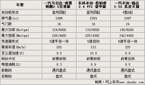 通過以上橫向?qū)Ρ,可以看出睿翼轎跑、思鉑睿和銳志的排量都在2.4這個(gè)區(qū)間,并且都具備了日系發(fā)動(dòng)機(jī)傳統(tǒng)的特點(diǎn):性能良好、油耗經(jīng)濟(jì),但是發(fā)動(dòng)機(jī)形式卻完全不同。從官方公布的等速油耗來看,睿翼轎跑的油耗要低于本田思鉑睿和豐田銳志,這與一汽馬自達(dá)強(qiáng)調(diào)的輕量化設(shè)計(jì)車身是分不開的。銳志采用了V型6缸發(fā)動(dòng)機(jī),該發(fā)動(dòng)機(jī)運(yùn)用了雙VVT-I技術(shù),因此在動(dòng)力方面明顯要優(yōu)越于睿翼轎跑和思鉑睿,同時(shí)再加上銳志為后驅(qū)車型,再加上百公里加速僅為8.9秒,就從這兩點(diǎn)就也可以看出銳志是一款偏運(yùn)動(dòng)的車型。在變速器方面,銳志略勝一籌,配備了手自一體式6速自動(dòng)變速箱,思鉑睿則是5速自動(dòng)變速器,是三款車型中配置較低的。三款車型的制動(dòng)系統(tǒng)都是前通風(fēng)盤后實(shí)心盤。