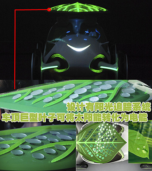 “葉子”車頂?shù)囊黄扌腿~子是一部高效的光電轉(zhuǎn)換器,可吸收太陽能轉(zhuǎn)化為電能,并以可視化的“葉脈”方式顯示能源的流動(dòng)。特別值得一提的是其陽光追蹤系統(tǒng),葉片上的太陽能晶體片可隨太陽照射方向而轉(zhuǎn)動(dòng),提高太陽能收集效率。