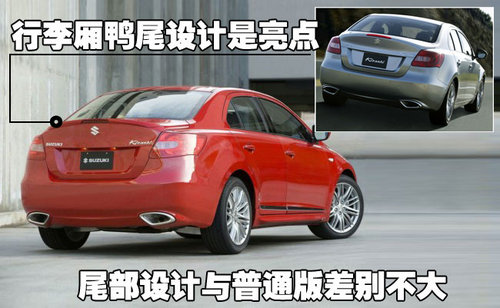 鈴木將在日本相良地區(qū)的全新工廠,進(jìn)行Kizashi車系的生產(chǎn)作業(yè)。延續(xù)Concept Kizashi概念車系的造型美學(xué),量產(chǎn)版Kizashi擁有強(qiáng)健的外觀線條,U字型的水箱總成為其塑造鮮明的辨識特征,與概念車款相比,Kizashi 的頭燈則更加飽滿有神。而對于這款運(yùn)動版車型來說,它的外形更加動感了。