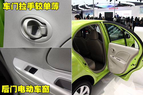 東風(fēng)日產(chǎn)瑪馳的四門車窗升降均為電動(dòng)升降,駕駛席側(cè)的車窗為一鍵式升降。中控鎖和車窗鎖定鍵也分布在這里,消費(fèi)者無(wú)需扭動(dòng)身體即可完成一系列的操作,使用起來(lái)簡(jiǎn)單方便。
