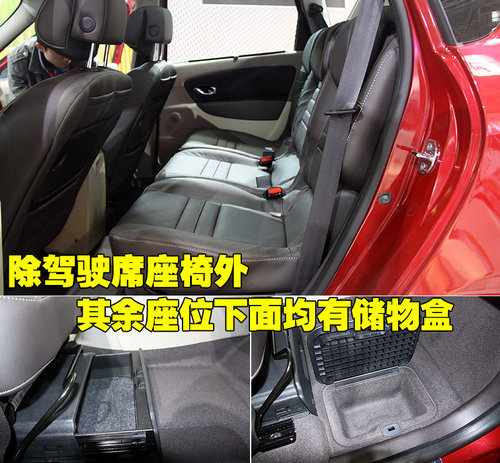 雷諾新風(fēng)景的后排空間比較充足,對于一般身材的乘員來說都能夠得到比較充足的腿部空間。另外座椅下方還配備了實用的儲物盒,使用簡單方便。座椅兩側(cè)的B柱上還設(shè)計了左右獨立自動空調(diào),為消費者提供了舒適的乘坐環(huán)境。