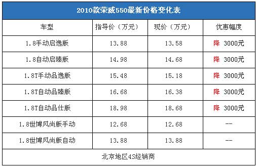 近日,編輯從北京地區(qū)上汽汽車4S經(jīng)銷商處了解到,榮威550全系車型的現(xiàn)車比較充足,購車可以優(yōu)惠3000元左右。據(jù)經(jīng)銷商介紹,在春節(jié)期間推出的榮威550賀歲版在世博會到來之際改名為“世博風尚版”繼續(xù)銷售,因為賀歲版車型的性價比較高,沒有大幅度的現(xiàn)金優(yōu)惠。店內銷售人員介紹,如果不需要現(xiàn)金優(yōu)惠,消費者在店內可獲贈世博版大禮包,有機會免費參加上海世博會。