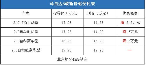 近日,編輯從北京地區(qū)方正利成一汽馬自達(dá)4S經(jīng)銷商處了解到,馬自達(dá)6的現(xiàn)車充足,優(yōu)惠幅度非常可觀,手動擋車型降價2.5萬元,而自動擋車型最高可以降價3萬元。據(jù)經(jīng)銷商透露,選擇分期付款,那么消費者首付不足8萬元就可以把曾經(jīng)的“神車”開回家。