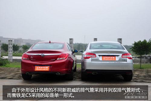 C5和新君威在外觀上的區(qū)別,就如同聊起法式浪漫的陶醉和美式運(yùn)動的活潑歡快一樣。當(dāng)把這兩輛車放在一起時,不用去看任何參數(shù)數(shù)據(jù),不用去想任何設(shè)計理念,你都能輕易的嗅出他們的不同。C5在造型上用了較大手筆的剪裁,被拉寬的尾部視覺,有沖擊力的前臉造型以及匍匐前進(jìn)的那條強(qiáng)有力的腰線都在C5長前懸+短后懸的比例中體現(xiàn)出來。