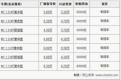 瑞麒品牌所推出的首款車型瑞麒M1,在上市之后,根據(jù)國(guó)內(nèi)消費(fèi)者的需求,瑞麒M1在推出1.0和1.3L兩款手動(dòng)檔車型后,又推出了1.3L自動(dòng)檔車型,豐富產(chǎn)品線的同時(shí)給消費(fèi)者更多的選擇余地。近期,網(wǎng)上車市走訪了北京地區(qū)瑞麒4S店,對(duì)瑞麒M1最新的市場(chǎng)情況進(jìn)行了了解,發(fā)現(xiàn)目前瑞麒M1車型全系降價(jià)又有了新高度。