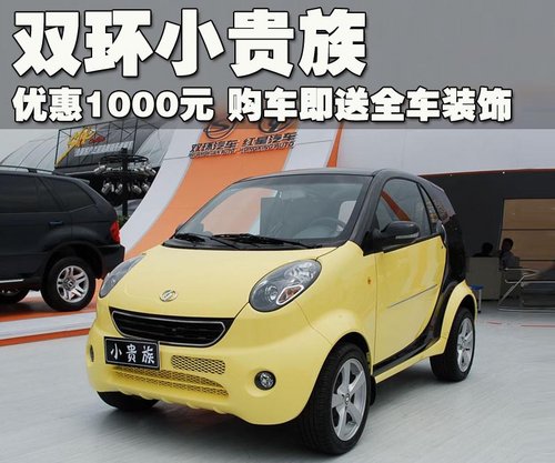 雙環(huán)小貴族車(chē)型引起人們關(guān)注的主要原因,就是因?yàn)橥庑卧O(shè)計(jì)與Smart極為相近,小貴族憑借著低價(jià)和小車(chē)身也在市場(chǎng)占有一定的地位。通過(guò)對(duì)北京地區(qū)雙環(huán)小貴族車(chē)型的調(diào)查,我們發(fā)現(xiàn)小貴族最近不但有降價(jià)活動(dòng),而且還有好禮相送,具體信息請(qǐng)參考下表: