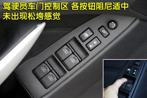 駕駛員一側(cè)的門窗控制區(qū)域,各按鈕阻尼適中,沒有任何松垮感覺。車窗提供了一鍵式門窗升降,車門中控鎖位置便于駕駛者操作。