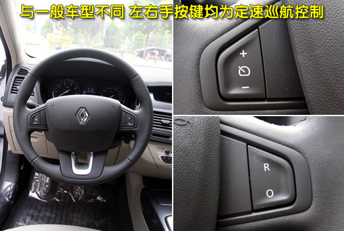 如同外觀一樣,法國人的設(shè)計永遠是我們摸不透的,按一般車型來講,方向盤中多會集成音響及定速巡航控制鍵,而新拉古那方向盤的左右手位置均為巡航按鍵。