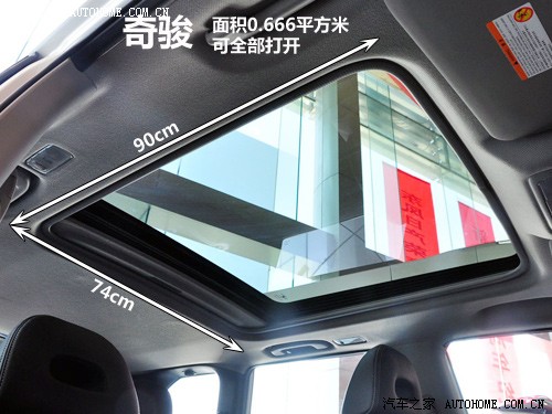 準(zhǔn)確地說,奇駿的天窗應(yīng)該叫大天窗,它的面積遠(yuǎn)超過一般意義上的普通天窗,但是距離全景天窗應(yīng)該說還是有差距的。不過,經(jīng)過實(shí)際測量,奇駿的天窗面積雖然跟其他全景天窗或雙天窗相比要小一點(diǎn),但是它實(shí)際可以打開的面積卻是最大的?梢哉f,奇駿的整個天窗幾乎都是可以打開的。