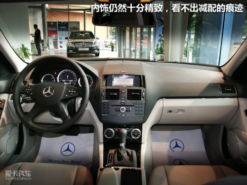 打開車門,我沒有看到粗糙的做工和廉價的用料,整車內飾仍然十分細致。通過車內閃閃發(fā)光的鍍鉻裝飾與精良的做工能感受到奔馳一絲不茍的造車品質。車內的減配在不容易察覺的地方,例如座椅電加熱功能被省略,座椅的電動調節(jié)也從車門處移到座椅下。自動防眩后視鏡也被減配為手動調節(jié)。