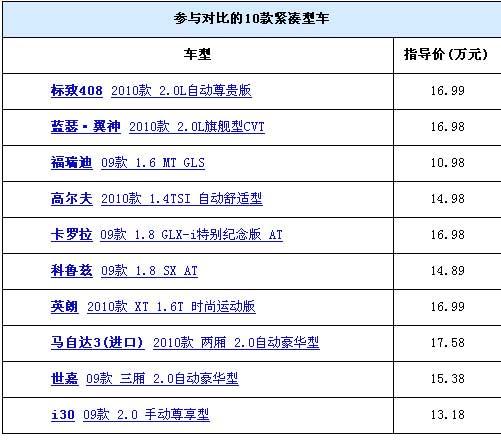 汽車之家的年度大戲又開鑼了!經(jīng)過兩個(gè)多月的精心策劃和準(zhǔn)備,我們組織了這次大型的緊湊型車全面對(duì)比!我們的目標(biāo)是將市場上主流的緊湊型車一網(wǎng)打盡,來一次從里到外、從靜到動(dòng)的全面PK。這次一共邀請到了以下十款車型,他們款型相對(duì)都比較新,消費(fèi)者在選車的時(shí)候經(jīng)常徘徊其中。從今天開始,我們將分別從外觀與做工、內(nèi)飾與空調(diào)、儲(chǔ)物空間、乘坐空間等四個(gè)靜態(tài)方面和動(dòng)力與操控性能、燃油經(jīng)濟(jì)性等兩個(gè)動(dòng)態(tài)方面以及保養(yǎng)售價(jià)等對(duì)這十款車進(jìn)行全面的對(duì)比。